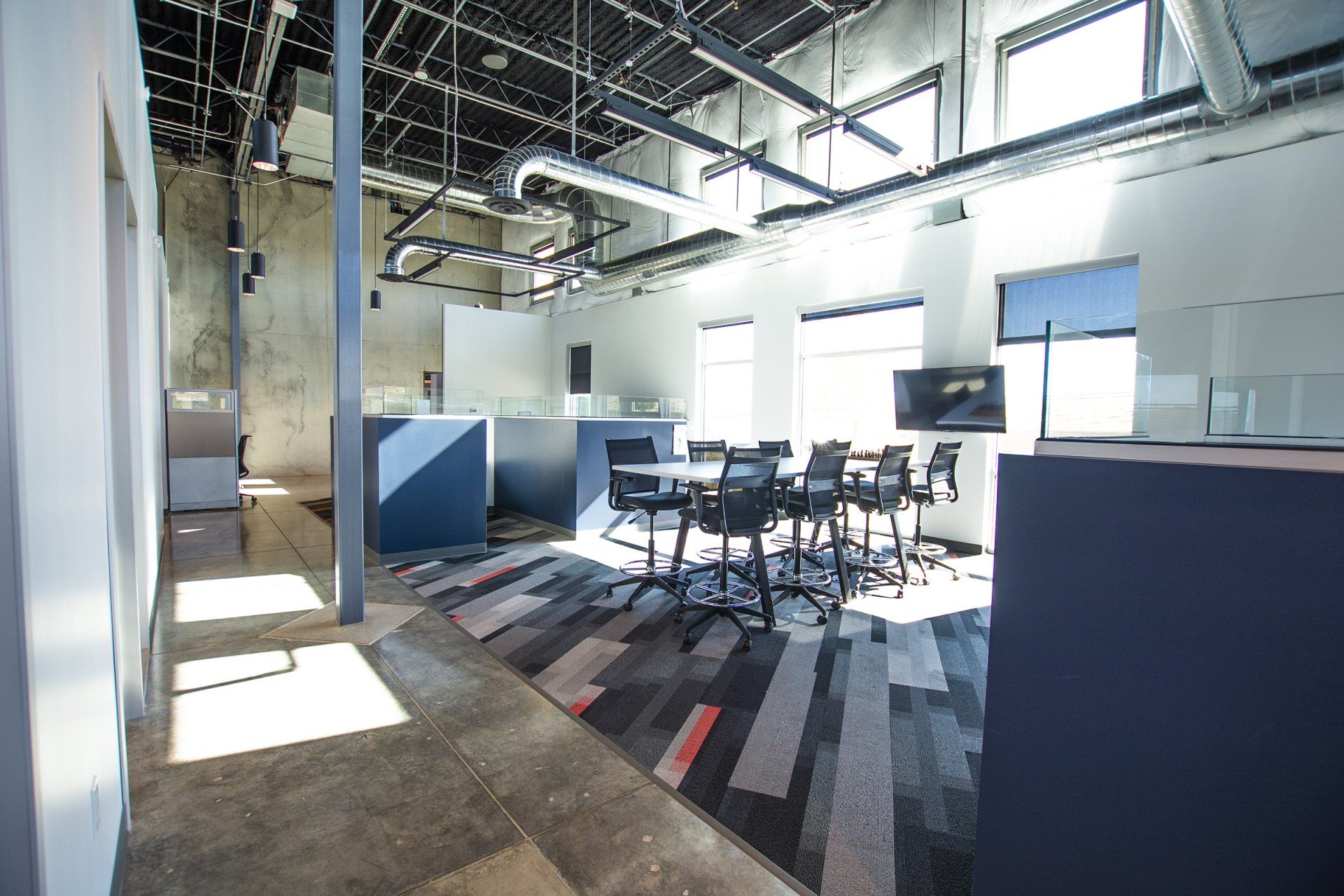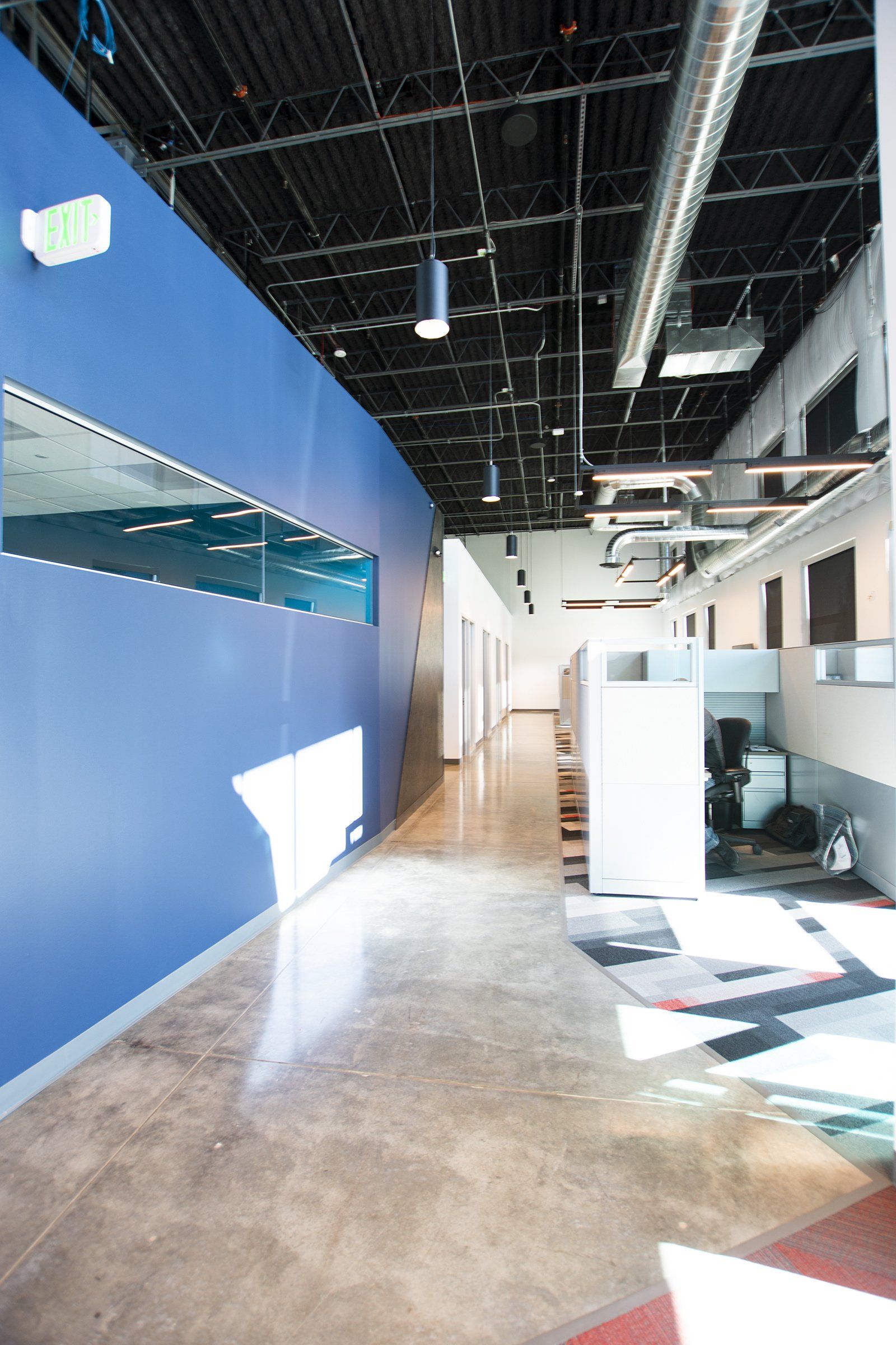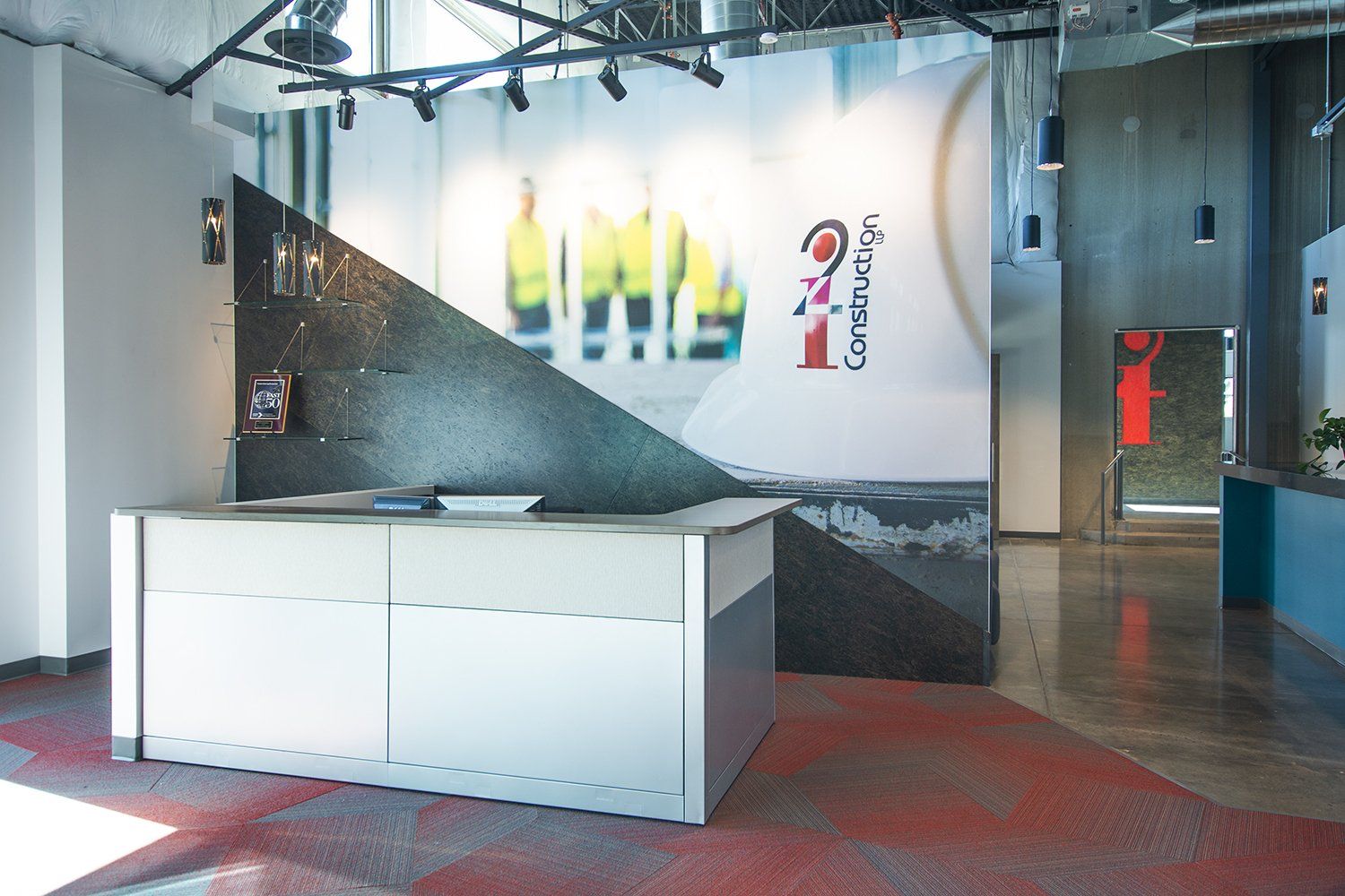 i2 Construction chose Kestrel Design Group to design their office space due to our collaborative process and ability to fit high-creativity within a modest budget. The resulting design reflects their brand, not only with color and texture but with the energy and vibrancy of their team members. A key factor of the overall design was to highlight construction materials as finished product rather than only as a necessity.